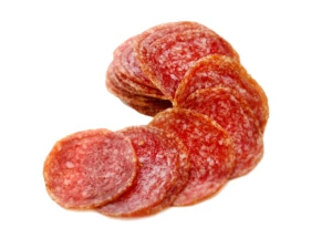 Пицца вся усыпана ломтиками острой колбасы «Пепперони», от которой и получила свое название.